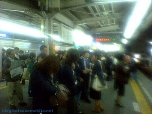 池袋だったら、暴徒と化してる光景ですな。目の前で窓割られたときはさすがにびびった(^^;はぁ、さいたま、さいたま(合いの手) どうやら事故の模様。最近、よく混むのに当たるんだよなぁ。 渋谷駅 東横線ホーム かつべ@下北沢NOW